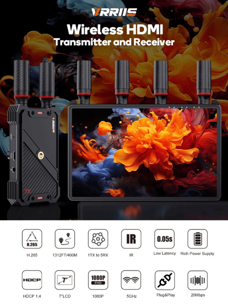 1,312FT WL083 Wireless HDMI Extender Video Transmitter Receiver with 7-inch Monitor LCD Screen